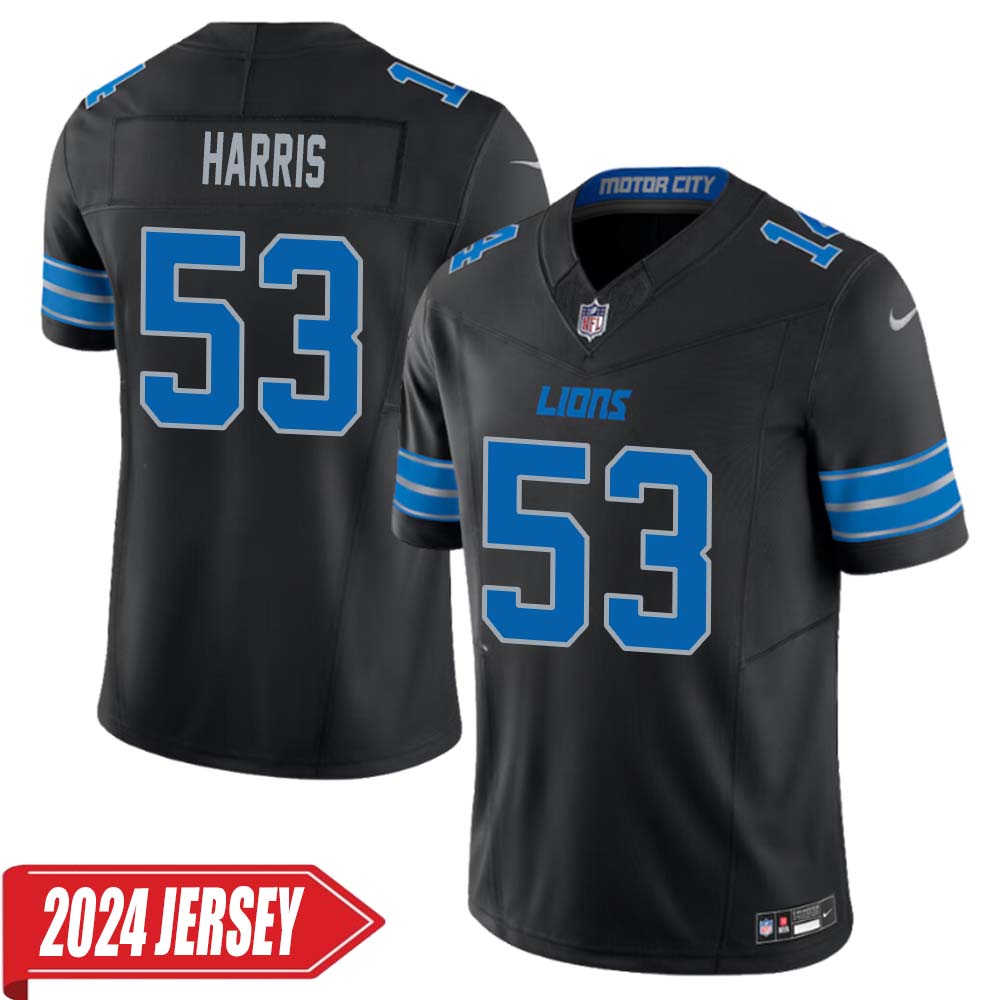 Charles Harris No 53 Men’s Detroit Lions 2nd Alternate Vapor F.U.S.E. Limited 2024 Jersey – Black