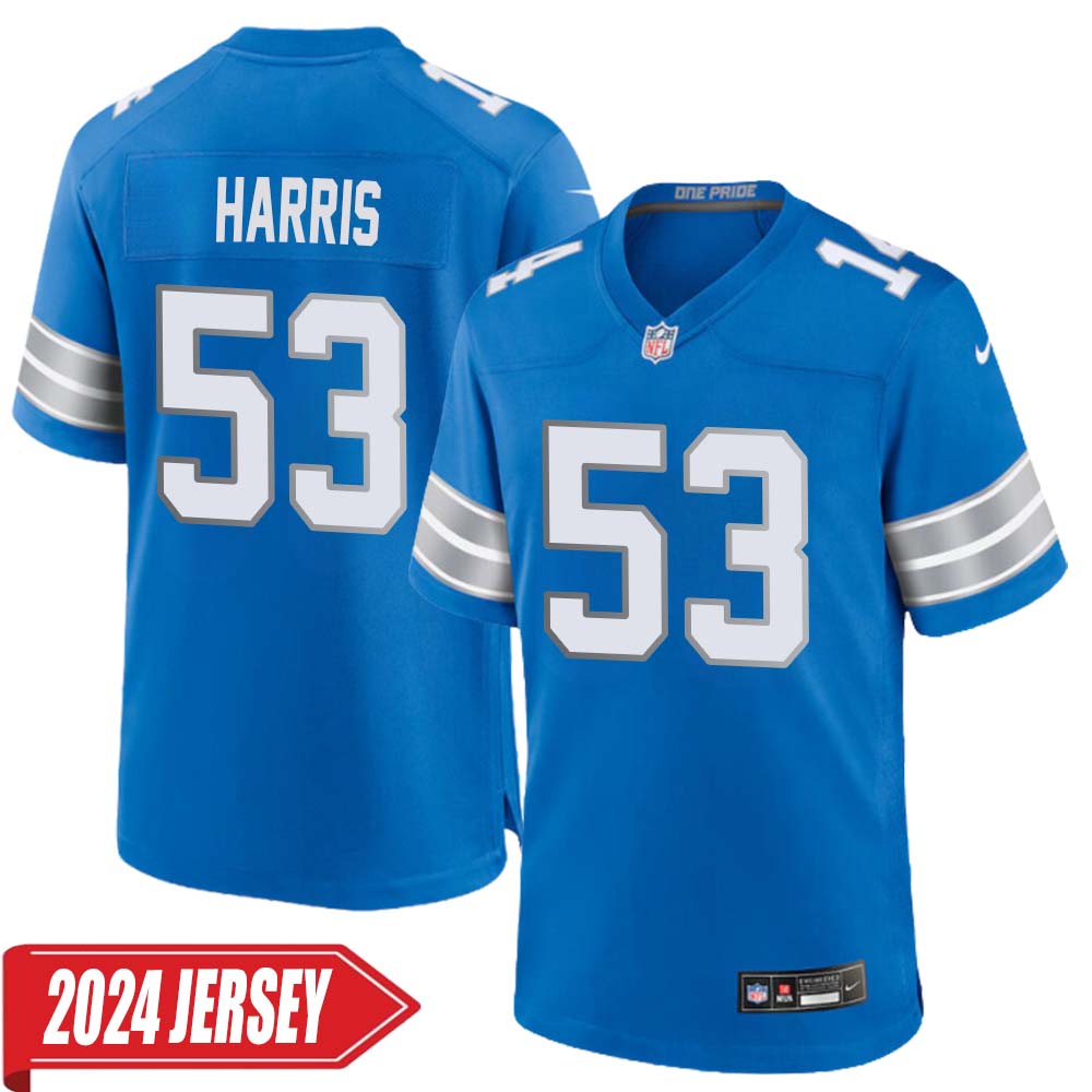 Charles Harris No 53 Men’s Detroit Lions Home Game 2024 Jersey – Blue