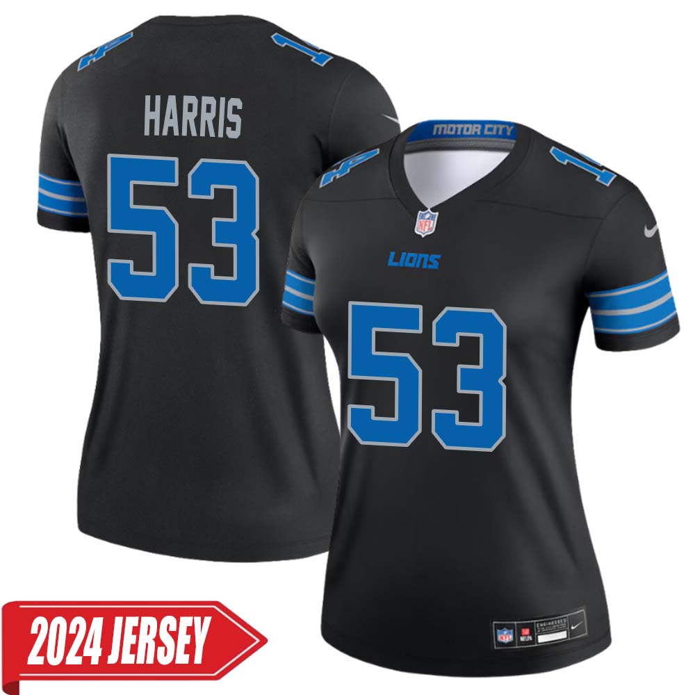 Charles Harris No 53 Woman’s Detroit Lions 2nd Alternate Vapor F.U.S.E. Limited 2024 Jersey – Black
