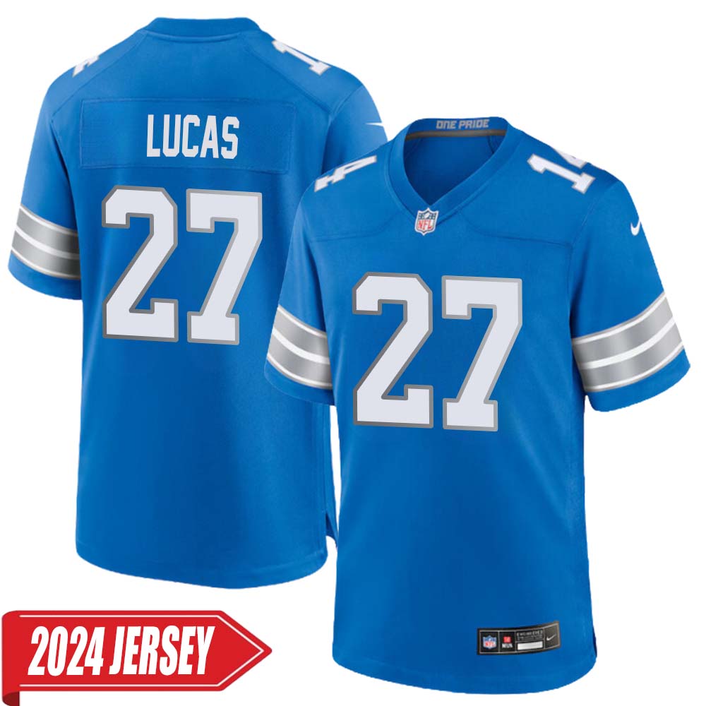 Chase Lucas No 27 Men’s Detroit Lions Home Game 2024 Jersey – Blue