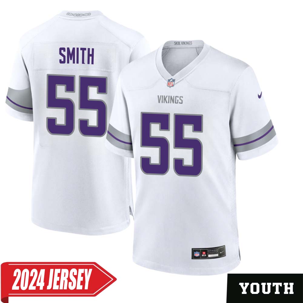 Za’Darius Smith No 55 Youth’s Minnesota Vikings White Alternate Custom Game 2024 Jersey